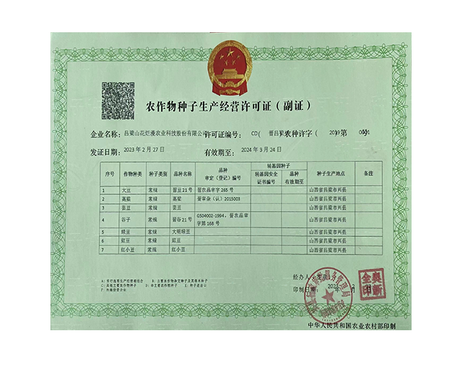 呂梁山花爛漫農(nóng)業(yè)科技股份有限公司是山西省農(nóng)業(yè)產(chǎn)業(yè)化重點(diǎn)龍頭企業(yè),公司成立于2008年,法人代表賀虎平,注冊資本1000 萬元,現(xiàn)有員工 30 人。公司位于興縣蔡家會鎮(zhèn)蔡家會村建有占地面積1萬多平方米生產(chǎn)區(qū)和辦公區(qū),年總加工雜糧能力達(dá)到4萬噸。擁有一套日精加工50噸谷子成套設(shè)備生產(chǎn)流水線;擁有一套日精加工30噸豆面、蕎面設(shè)備流水生產(chǎn)線;擁有一套日精加工50噸紅小豆、豇豆、綠豆、腎型黃豆、紅蕓豆設(shè)備流水生產(chǎn)線,2020年引進(jìn)省農(nóng)科院農(nóng)產(chǎn)品加工研究所谷子精深加工技術(shù),目前設(shè)計年產(chǎn)300噸的小米油加工一條龍生產(chǎn)線已經(jīng)安裝調(diào)試完畢,產(chǎn)品經(jīng)化驗達(dá)到國家一級油標(biāo)準(zhǔn),并獲得兩項專利證書。主要產(chǎn)品有“山花爛漫”牌有機(jī)小米、綠色小米各種精美包裝系列;蔡家會村豇豆面、豌豆面等雜糧面、手搟豆面系列、以及有機(jī)精品雜糧系列。擁有“山花爛漫”山西省著名商標(biāo)。公司采用線下和線上銷售相結(jié)合的營銷模式。
